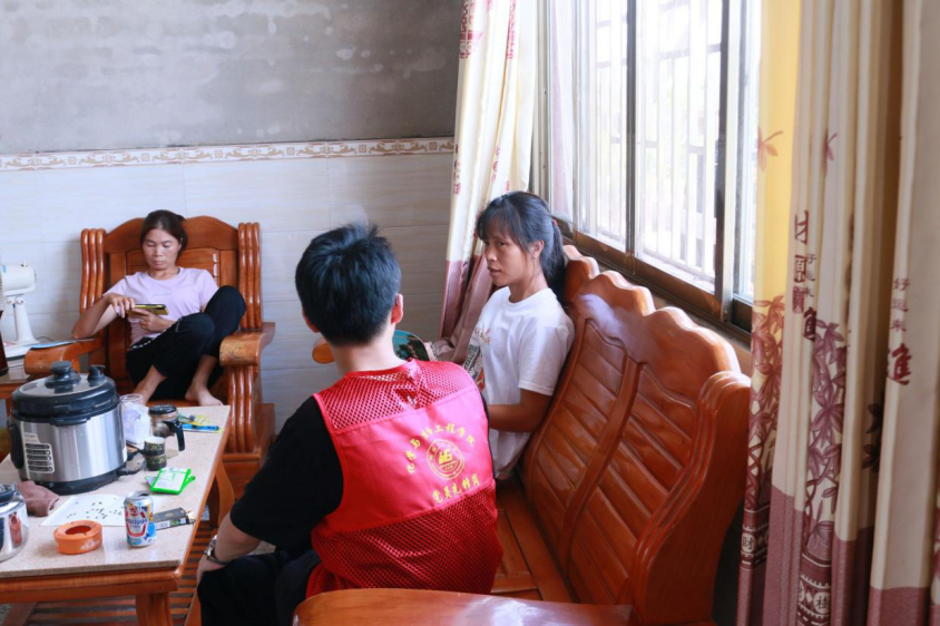 图为实践团队成员在村民家中进行普通话使用情况的访谈。