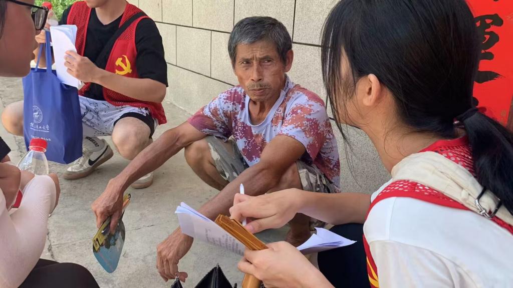 图为实践团队成员就普通话推广场所与村民爷爷的谈话。