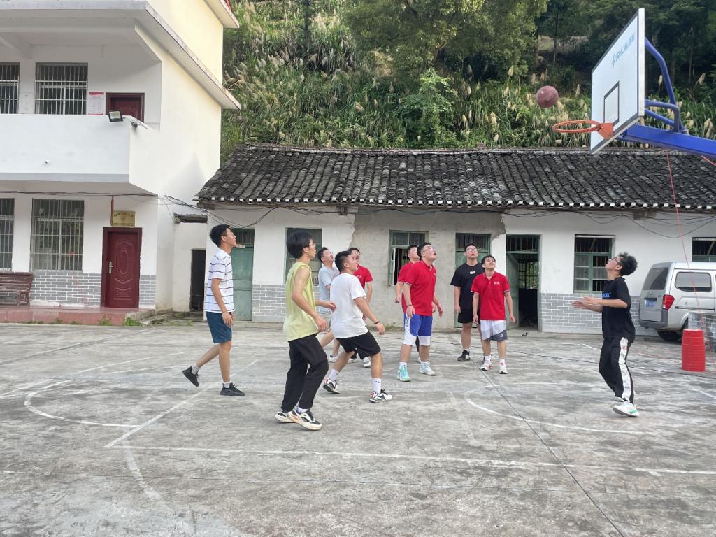 座谈交流后,实践团成员与大源村青少年开展了一场友谊和激情的“村BA”篮球赛。在篮球场上,队员们肆意挥洒着汗水,让青春之火延续到基层,让奋斗不息之精神贯穿在坚守初心与追求理想的路上。在场边的成员们在一旁呐喊助威,村民们也纷纷加入感受热闹和氛围。