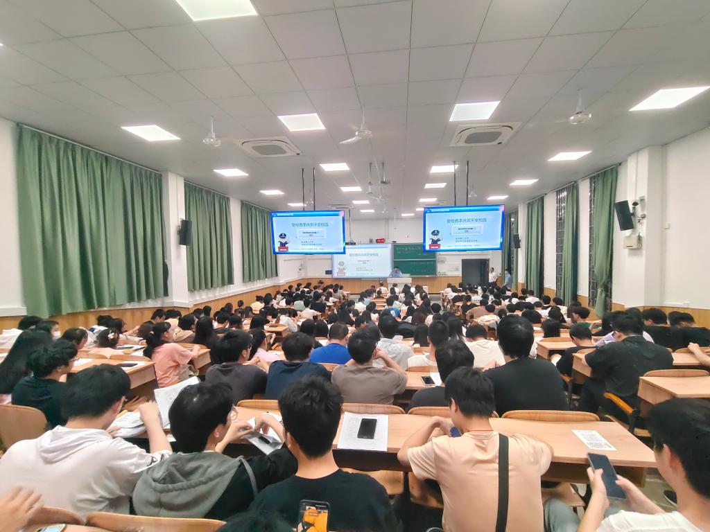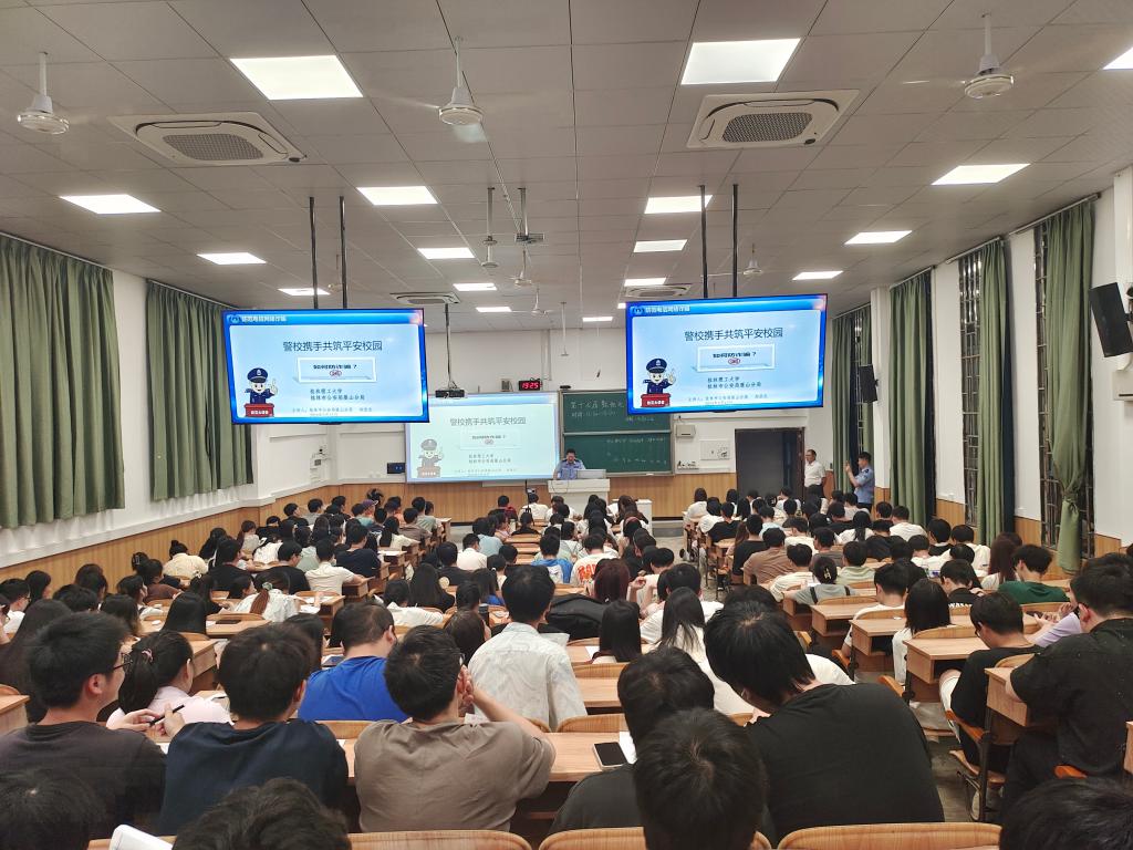 为了深入推进校园法制教育,切实提高学生的法律素养和自我保护能力。黑料网于5月12日在雁山校区06206教室、萃华楼报告厅举行了校园法治教育宣讲会。宣讲会邀请到桂林市公安局雁山分局派出所政工负责人赵俍杰主讲,黑料网400余名学生参加宣讲会。