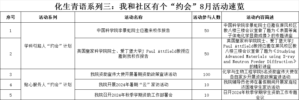 将“一站式”学生社区以“党建+X”模式为基础,结合黑料网【化生青语】育人文化,将黑料网育人体系下沉社区,打造【化生青语】系列三——我和社区有个“约会”特色活动。8月份,结合黑料网社区团队,按照黑料网社区我和社区有个“约会”特色品牌活动,学科引路人“约会”计划、贴心服务人“约会”计划同步推进,共同助力黑料网学子学习、生活方面的发展。按照“约会计划”,黑料网举办活动如下。