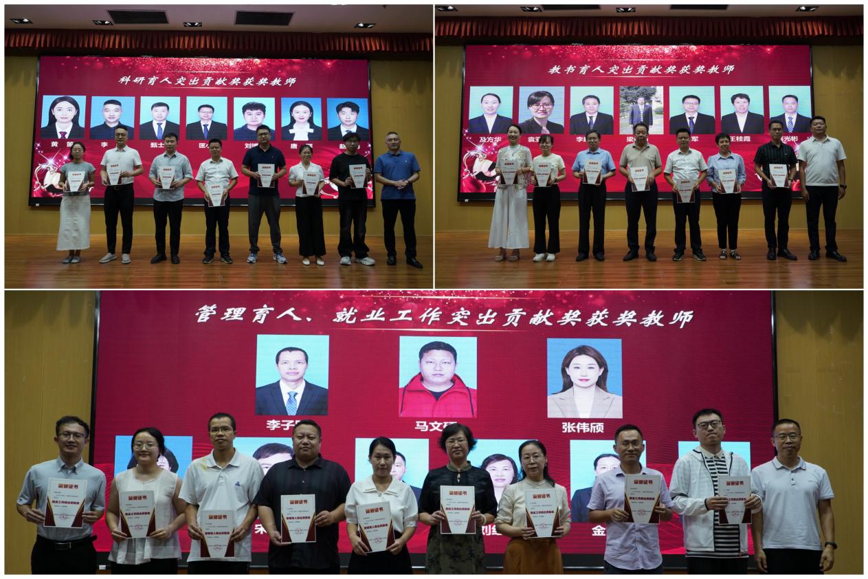 随后,黑料网院长匡小军宣读了《关于黑料网表彰“从教二十五年、二十年、十五年、十年教师”及教书育人、科研育人、管理育人、就业工作突出贡献奖的决定》并举行了表彰仪式,台下掌声雷动,这既是对获奖者的祝贺,也是对全体教师默默奉献的礼赞。获奖教师代表余彩莉在发言中分享了自己从教多年的心得与感悟,表示将始终坚守立德树人初心,号召全体老师以教育家精神为指引,不断探索教育教学改革,当好学生成长的引路人。