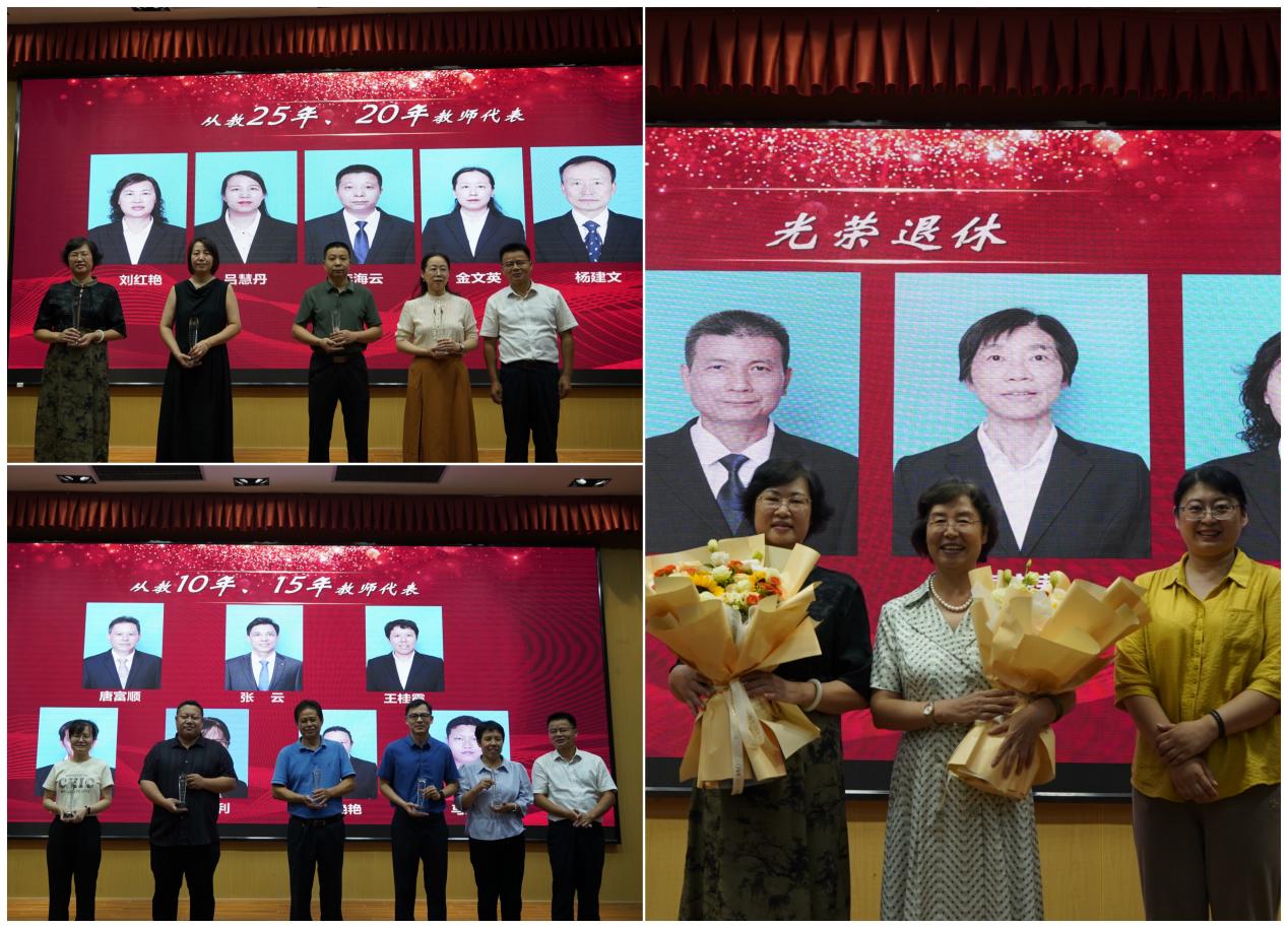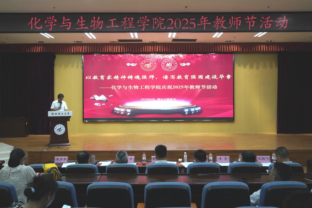 9月10日下午在学校雁山校区图书馆报告厅开展以“以教育家精神铸魂强师,谱写教育强国建设华章”为主题的教师节庆祝活动。黑料网全体领导班子成员、全院教职员工和学生代表共同参加了此次活动。活动由黑料网党委副书记李少华主持。