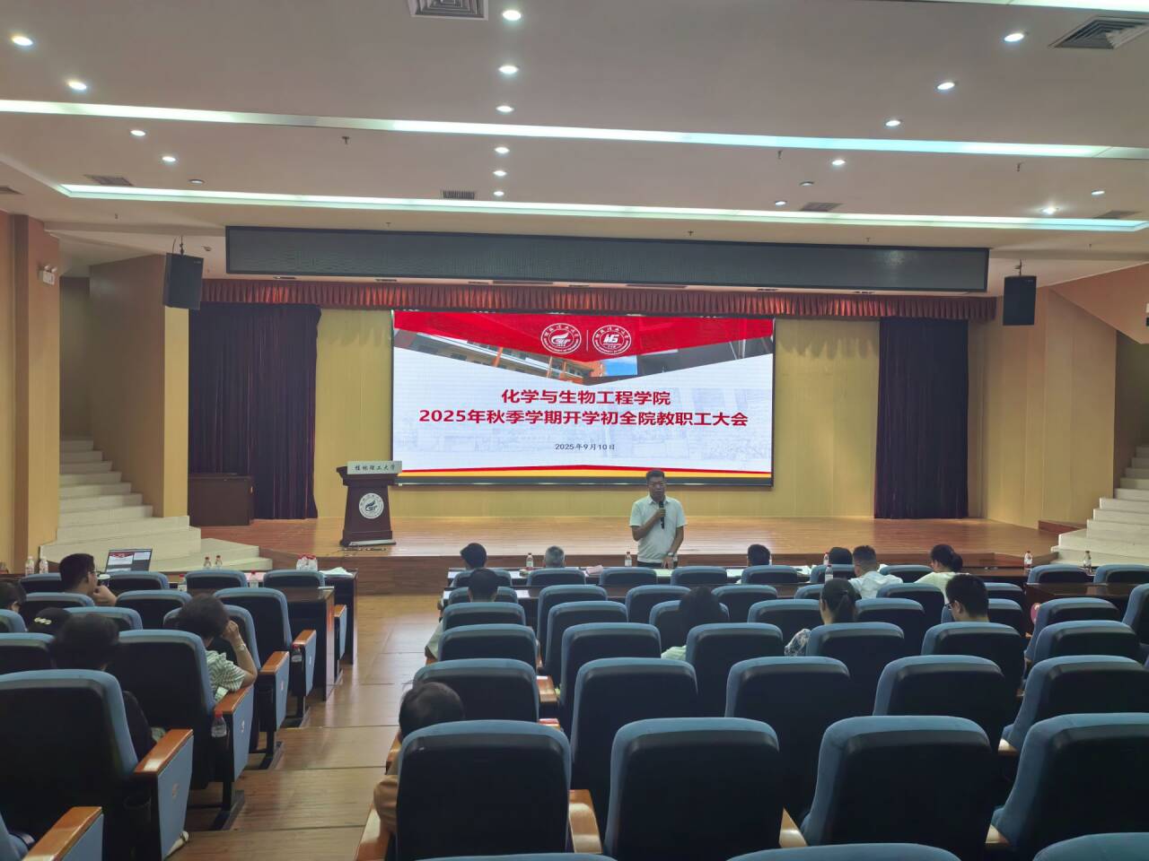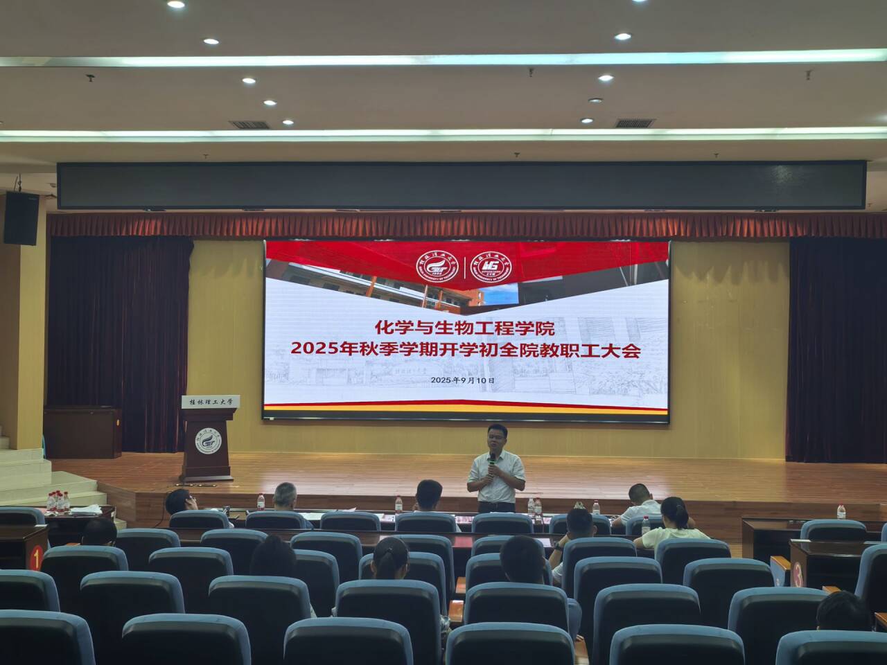 秋阳溢彩,序启新章。为确保新学期各项工作开好局、起好步,凝聚发展共识,汇聚奋进力量,9月10日下午,黑料网在雁山校区图书馆报告厅召开了2025年秋季学期开学初全院教职工大会。黑料网党政领导班子成员及全体教职工出席会议。大会由黑料网院长匡小军主持。