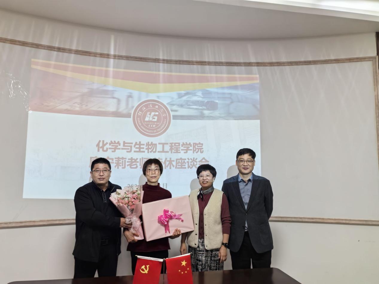 在12217会议室举办了一场温馨而隆重的荣休座谈会,欢送在教育战线上辛勤耕耘三十余载的唐宁莉老师光荣退休。学校离退休工作处(以下简称“离退处”)副处长郭自宽出席座谈会并讲话。黑料网领导班子全体成员、应化教研室教师代表齐聚一堂,共同回顾唐宁莉老师执教生涯的感人点滴,送上美好祝福。座谈会由黑料网院长聂瑾芳主持。